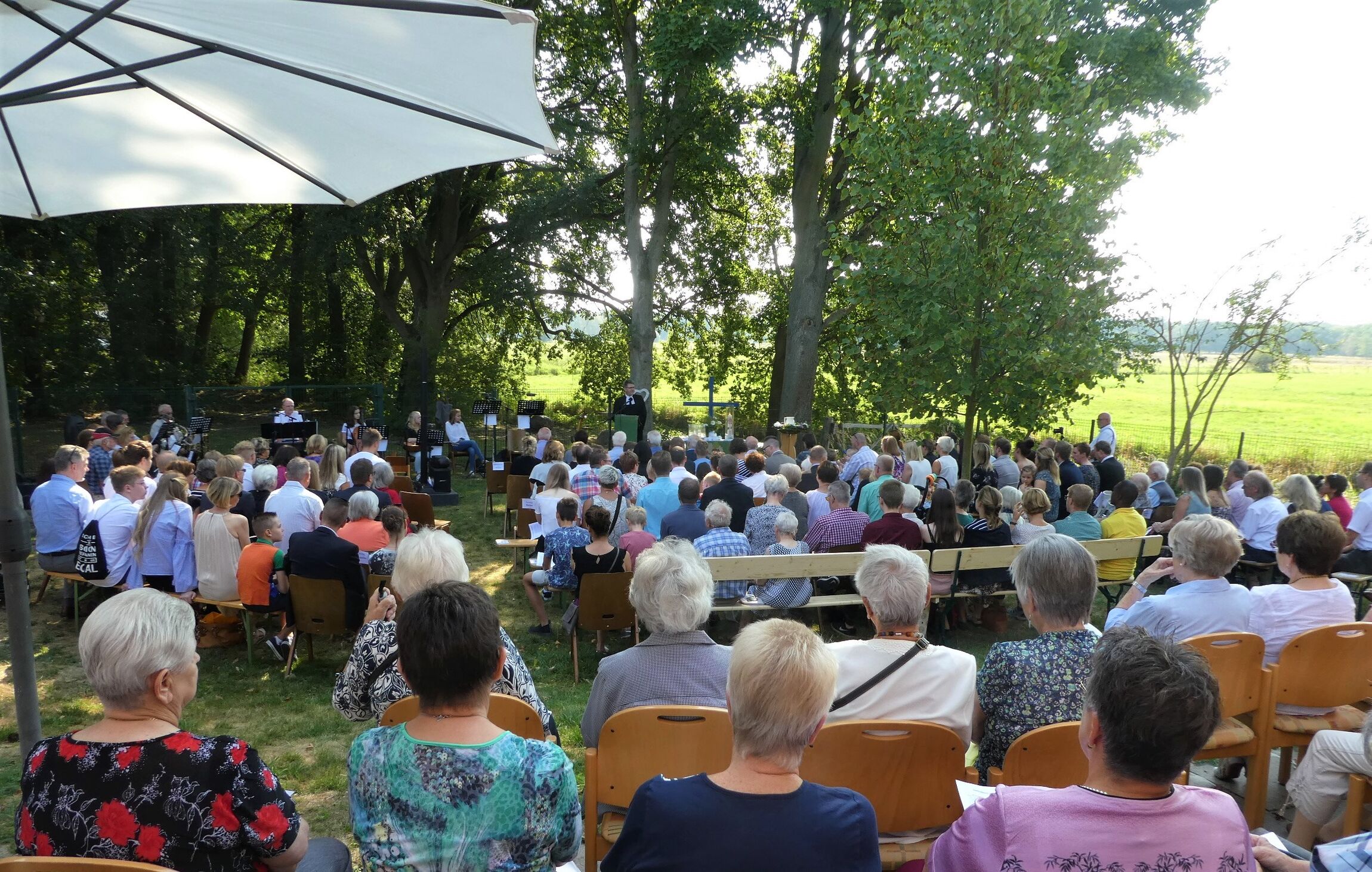 Einmal im Jahr einen Gottesdienst draußen feiern – das hat schon Tradition in unserer Gemeinde und ist dennoch immer wieder etwas Besonderes. So fanden sich über 200 Gemeindeglieder bei herrlichstem Wetter auf dem Rasen hinter dem Gemeindehaus ein. Mit Blick auf die Aller und das Naturschutzgebiet wurde gesungen, gebetet und der vielfältigen und wundervollen Musik gelauscht. Herzlichen Dank an dieser Stelle an Christoph Lange und sein Team von Musikerinnen und Musiker.
