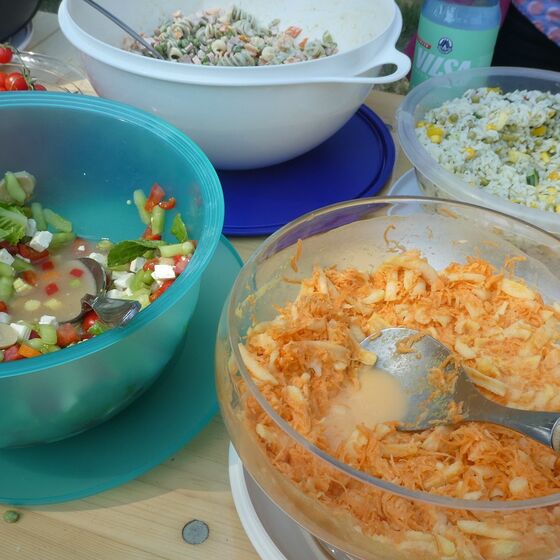 Im Anschluss an den Gottesdienst gab es Leckeres vom Grill und ein köstliches Salatbuffet. Das nutzten viele Besucher aus und ließen an diesem Sonntag Ihre Küche kalt. Danke an allen Helferinnen und Helfer: Salate machen, Tisch und Bänke aufbauen, die Steaks und Würstchen grillen und vieles mehr - ohne Sie und Euch würde so ein Fest nicht gelingen.